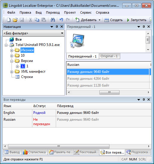 Lingobit Localizer - профессиональный инструмент для локализации приложений, обеспечивающий легкое и эффективное взаимодействие с переводчиками. Обеспечивает идеальные условия для взаимодействия между менеджером, переводчиками и тестерами. Теперь вам не понадобится исходный код, все технические детали скрыты за простым и интуитивным интерфейсом. В программе имеются эффективные инструменты для контроля качества, повторного использования переводов и управления проектом обеспечивают высокую продуктивность и отличное качество. При выпуске новой версии вашего приложения вам нужно перевести только новые или изменившиеся строки. Остальные переводы будут перенесены в новую версию автоматически. Поддерживает бинарную локализацию Win32/MFC, .NET и Delphi приложений. Тем самым вам больше не нужно изменять исходный код для перевода приложения.