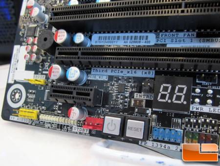 Для отладки на плате расположен диагностический индикатор, кнопки Power и Reset, а на заднюю панель вынесена кнопка сброса CMOS.