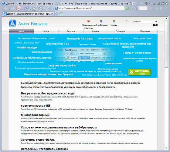 Скачать программу Avant Browser 2011 Build 32 (3,24 МБ):