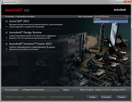• Autodesk Design Review доступен для установки и при выборе русского языка интерфейса для AutoCAD.