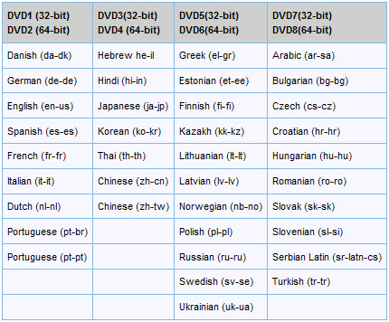 Важно. Большинство продуктов Office включает несколько файлов с другими языками. Например, русская версия Office также включает инструменты проверки для других языков. Даже при том, что эти дополнительные языки находятся на других DVD, обновления будут установлены полностью, если Вы установите только русский (DVD5 или DVD6). Дело в том, что у всех DVD есть обновления для инструмента проверки для всех языков. Поэтому, когда Вы решаете, в каком DVD Вы нуждаетесь, выберите только DVD, который соответствует основным языкам продуктов, которые Вы установили. Однако, если у Вас будут, к примеру, русская версия Office и английская версия Visio, то Вам потребуются и DVD5 и DVD1.