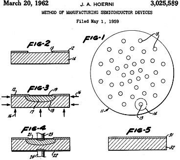 Патент Эрни на пригодный для массового производства планарный транзистор.