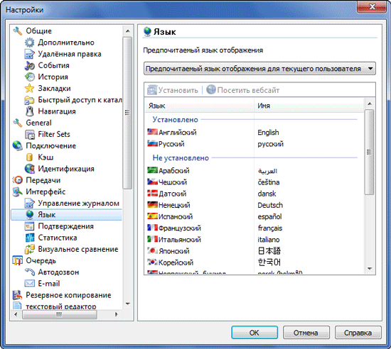 Русский язык интерфейса скачивается автоматически после установки программы или вручную через настройки.