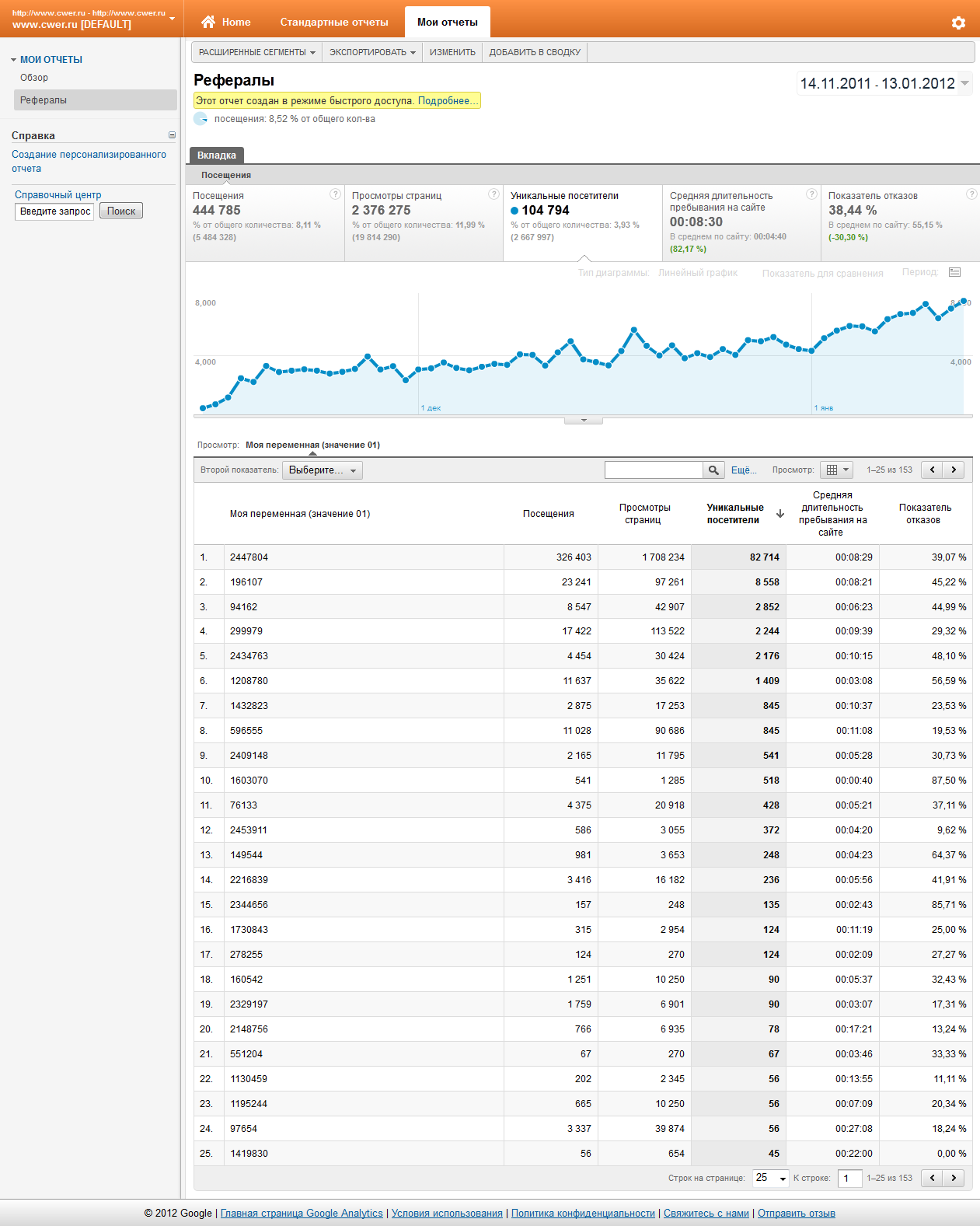 Параметр "Моя переменная (значение 01)" - это уникальный ID пользователя на сайте, входивший в реферальную ссылку (.../r/{ID}/...).