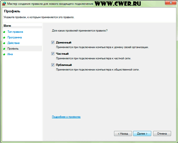 Применяем это правило для всех профилей либо выборочно на ваше усмотрение. И снова идем Далее.