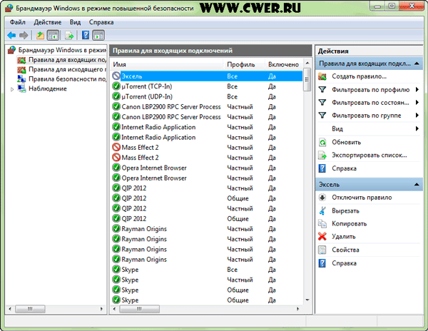 Итак, мы хотим запретить конкретной программе доступ в интернет. Пусть это будет для примера Microsoft Excel.