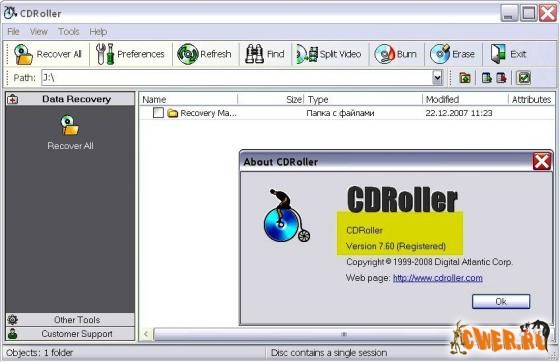 CD Roller - это программа, которая делает нечитабельные диски рабочими. Основное происхождение таких CD - повреждение, неправильно записанная сессия с мультисессионного CD, финалайзинг, выполненный с ошибками. Основной особенностью действия программы CD Roller является прямое обращение к аппаратной части привода в обход существующих приложений Windows. Благодаря низкоуровневым методам и алгоритмам CD Roller может читать данные, которые в обычном варианте воспринимаются как испорченный фрагмент и/или потерю данных. Как один из вариантов таких алгоритмов - изменение скорости вращения CD-ROM-диска.