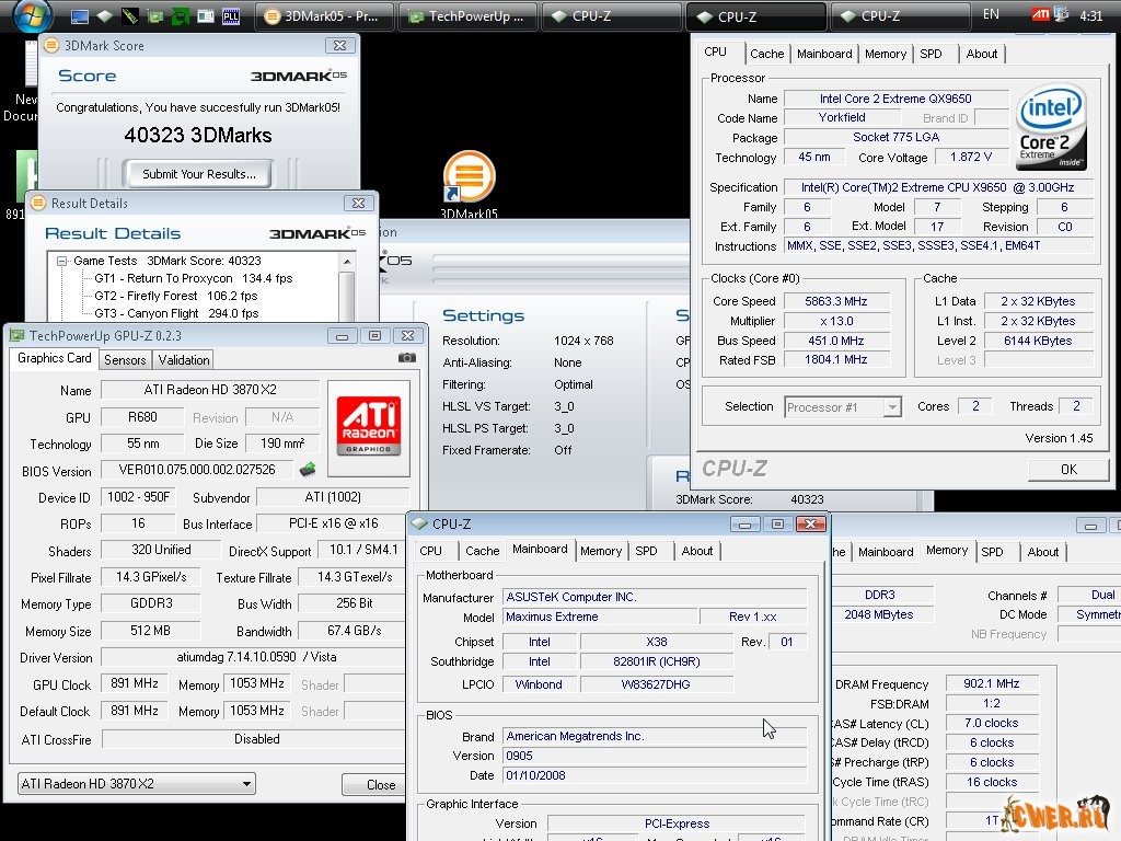 * Видеокарта – MSI ATI Radeon 2 х HD3870 X2@877/1053 МГЦ;