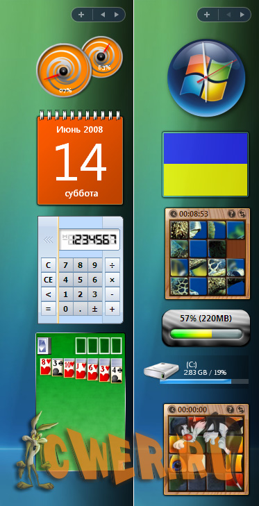 Скачать Windows Sidebar 6.0 Build 6001 для XP + русификатор (64,85 МБ):