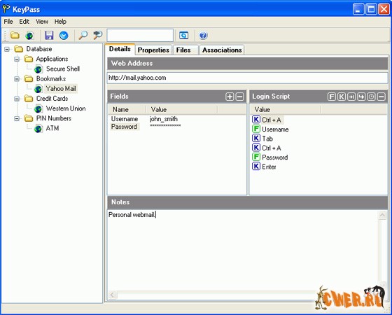 Программа для хранения и автоматической вставки паролей, логинов и всевозможных кодов доступа в окна запроса сайтов и программ "на-лету", т.е. с обходом захвата пароля вредоносными программами "угона" аккаунта. Если Вам надоели листочки и нудные команды "drag-and-drop" или "копировать-вставить" и Вы переживаете за доступ к буферу обмена Троянами, то это то, что Вам нужно. База закрывается единым паролем и шифруется мощным алгоритмом 448-bit Blowfish. KeyPass вызывает любой популярный браузер и все что Вам нужно, это нажать Ctrl и правую кнопку мыши, для автоматической вставки личных данных в окна авторизации или регистрации, минуя буфер обмена и блокируя все попытки считывания паролей. Имеет также ассоциативную память и чрезвычайно малый объем хранимой базы.