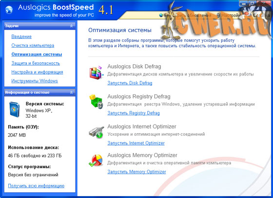 Скачать Auslogics BoostSpeed 4.1.4.133 Rus (4 МБ):