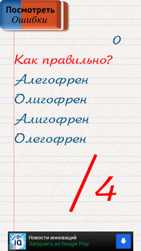 Ты тоже не знал, что "из-под мышек" пишется именно так? Тогда "Грамотей" удивит тебя ещё больше! Проверь свои знания с новой игрой "Грамотей", игрой для умных людей! В викторине собраны самые каверзные слова русского языка. Каждая игра состоит из 20 вопросов. Тебе дается 4 варианта написания непростого слова. Задача состоит в том, чтобы выбрать один правильный вариант. В конце игры ты получишь оценку своим знаниям: от 1 до 5+. Запоминай правописание слов и ставь рекорды! Повышение качества твоей орфографии и расширение кругозора гарантированы! В "Грамотея" можно играть одному, а можно устроить соревнование в большой компании и проверить, кто получит 5 в четверти! Проведите время весело и с пользой!