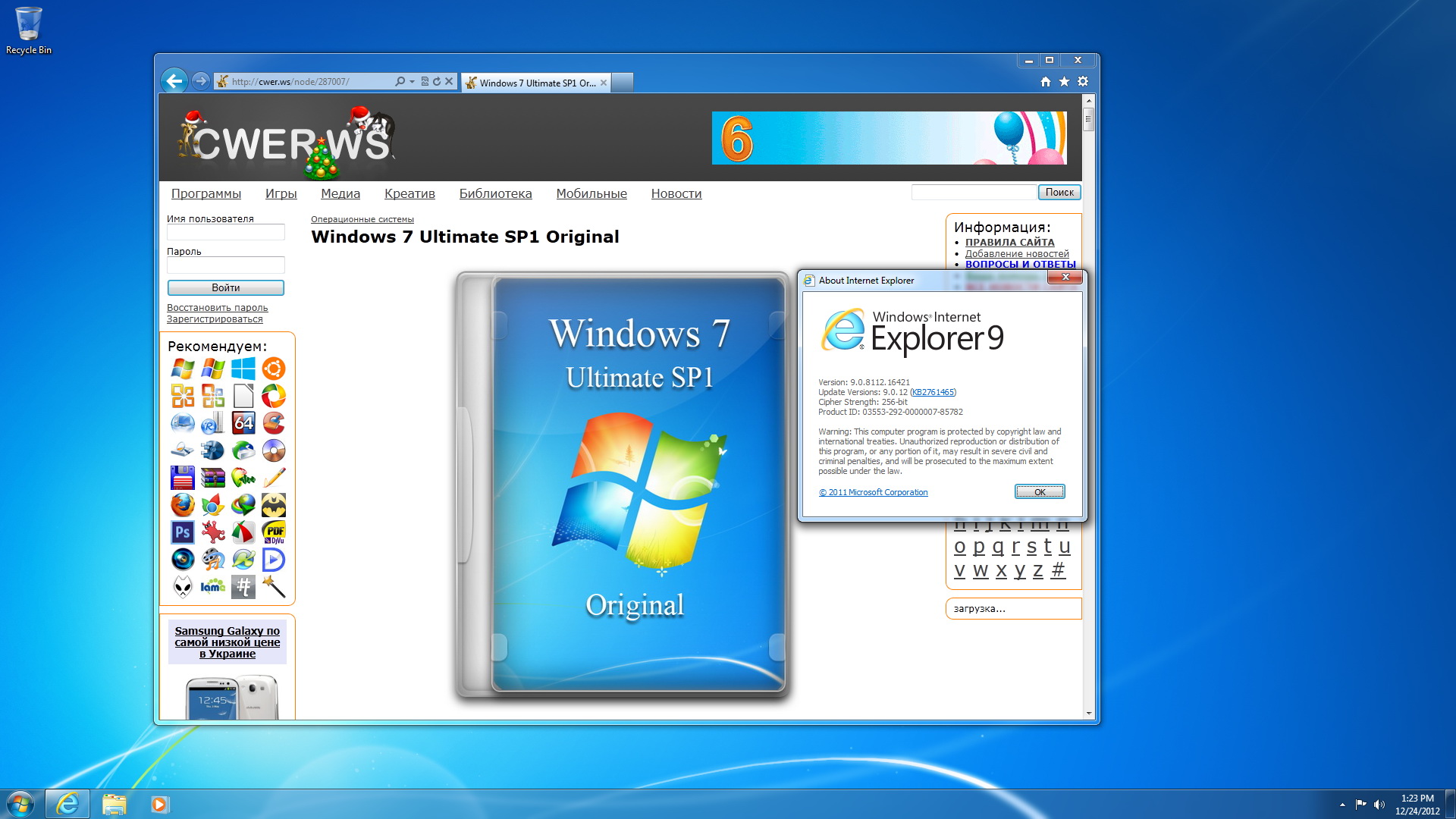 - Интегрирован Internet Explorer 9.0.12