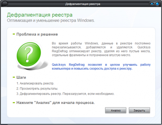 Скачать Quicksys RegDefrag 1.5 (0,9 МБ):