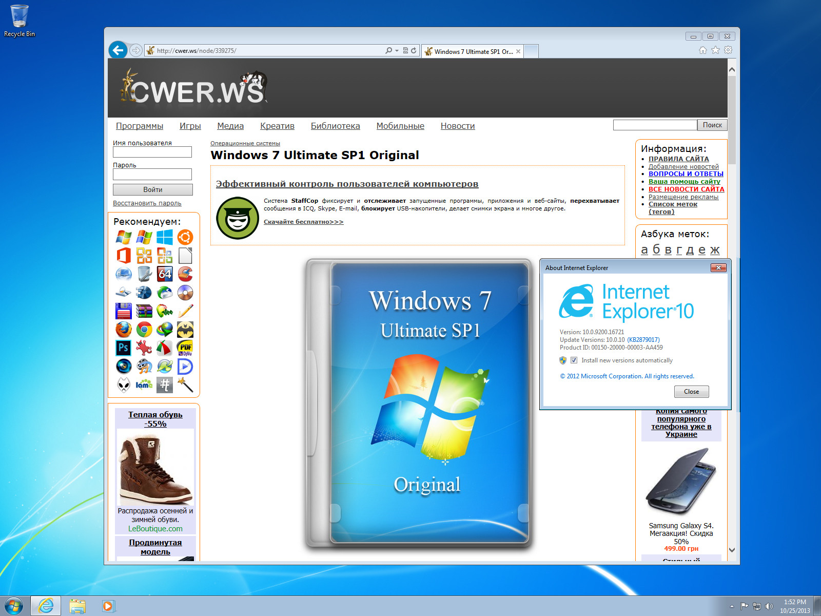 Скачать 32-разрядную операционную систему Microsoft Windows 7 Ultimate SP1 (2,93 ГБ):