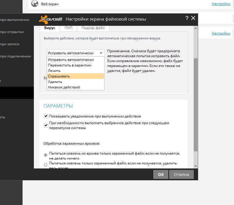 Да, при подозрительных файлах по-умолчанию стоит опция " исправить автоматически ", файл или удаляется или без запроса перемещается в карантин. Но если выставить " Спрашивать ", то программа будет спрашивать и последние действие будет за вами.