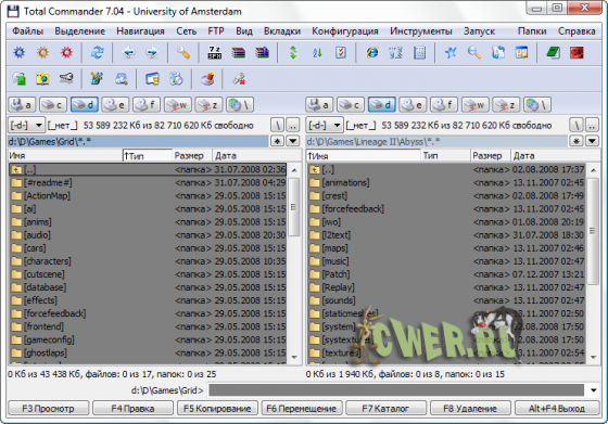 Кроме всех функциональностей, характерных для файловых менеджеров, в Total Commander встроены очень удобные просмотрщики для мультимедиа и графических файлов, распаковщики ZIP, ARJ, LZH, RAR, UC2, TAR, GZ, CAB, ACE и дополнительные dll для других архивных файлов; встроенный ftp-клиент - вообще просто прелесть: можно скачивать/закачивать файлы в несколько потоков, есть докачка, поддержка www-прокси при работе с ftp и есть даже такая функция, как подключение-скачивание-отключение в заданное время к заданному ftp. Не будут лишними и такие функции, как UUE/MIME/XXE кодирование/декодирование и разрезка/склейка длинных файлов, а также множество других функций, крайне необходимых для работы с файлами.