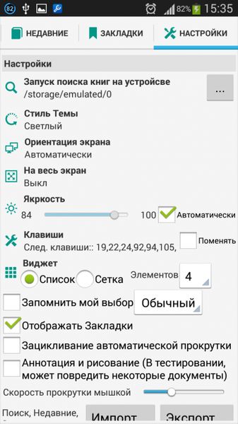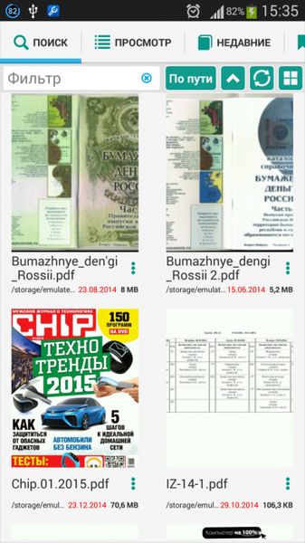 - Поиск всех PDF и DjVu книг на устройстве;