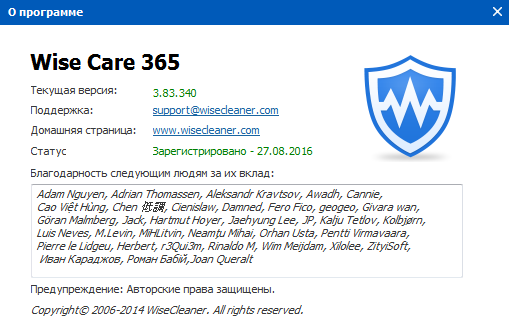 Скачать программу Wise Care 365 Pro 3.83 Build 340 Final (6,1 МБ):