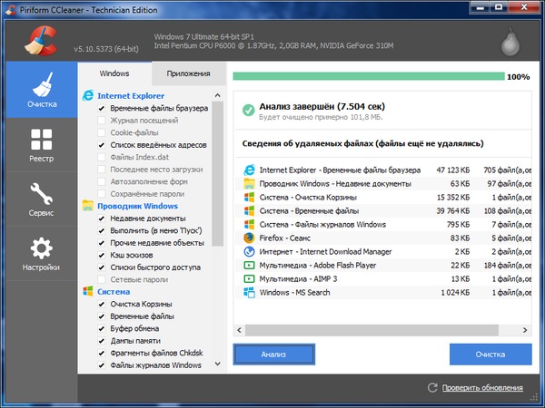 - Чистка данных других программ. CCleaner также очищает временные файлы и списки недавно открытых файлов других программ, например: Media Player, Safari, eMule, Kazaa, Google Toolbar, Netscape, MS Office, Nero, Adobe Acrobat, WinRAR, WinAce, WinZip и другие...