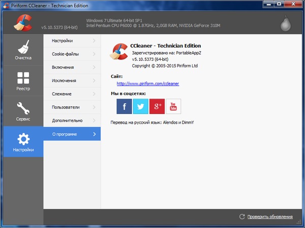 Скачать портативную сборку программы CCleaner 5.10.5373 Professional / Business / Technician Edition (7,62 МБ):