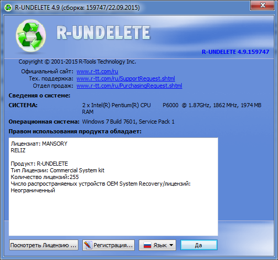 Скачать программу R-Undelete 4.9 Build 159747 (37,88 МБ):