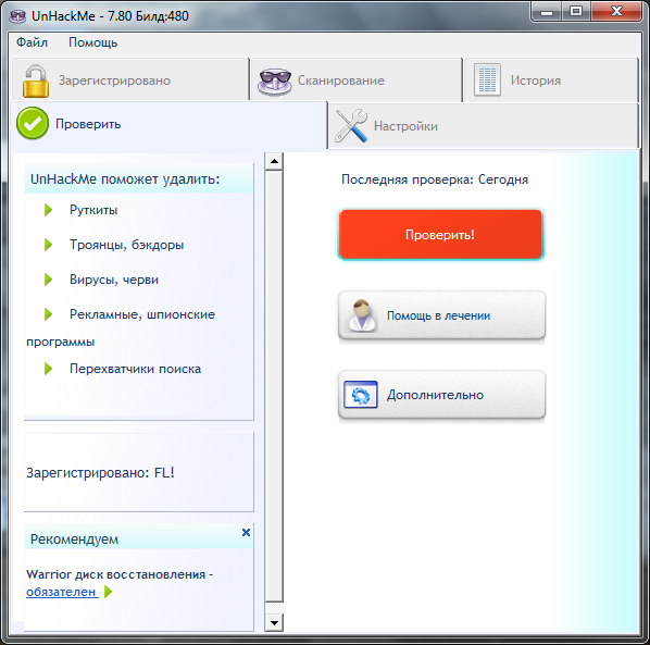 Скачать программу UnHackMe 7.80 Build 480 + русификатор (21,24 МБ):