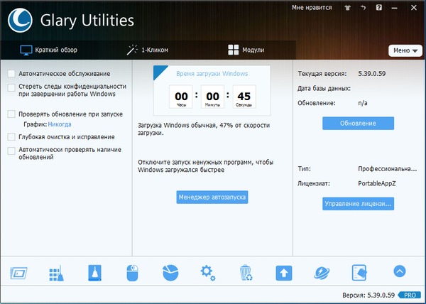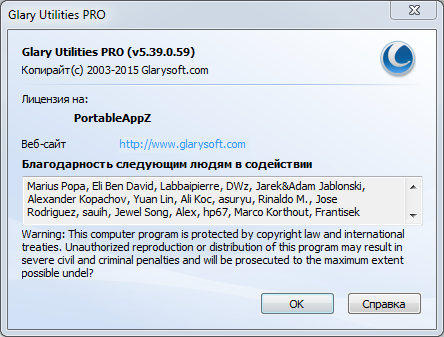 Скачать портативную программу Glary Utilities Pro 5.39.0.59 (16,75 МБ):