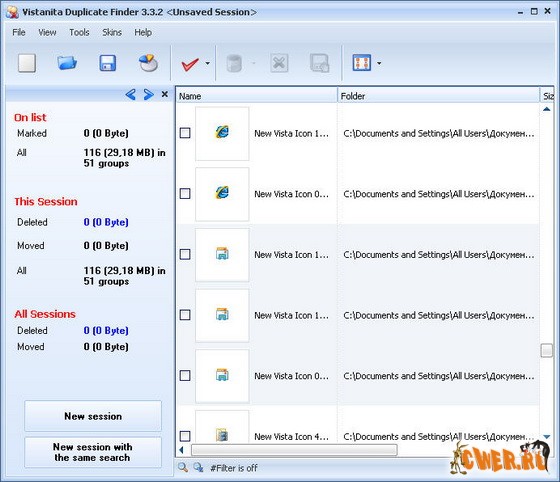 Обновилась Vistanita Duplicate Finder - программа для поиска и удаления одинаковых файлов на вашем ПК. Vistanita Duplicate Finder найдет абсолютные дубликаты на диске, независимо от их названия, расширения, веса и даты, т е полные аналоги, подсветит их зеленым цветом и предложит вам принять решение о их удалении. Помимо этого программа находит похожие файлы музыки и картинок и для удобства имеет окно предварительного просмотра перед удалением. Vistanita Duplicate Finder использует метод Byte-to-Byte, который, как заявляют разработчики, находит дубликаты файлов в 100% случаях. Программа использует минимум ресурсов и может работать даже на старых ПК. Совместима с Windows Vista.