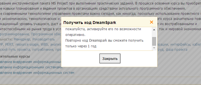 Браузер использую - фаерфокс, с отключённым флэшом. Может в этом дело или программа майкрософта по поддержке студентов закрылась?
