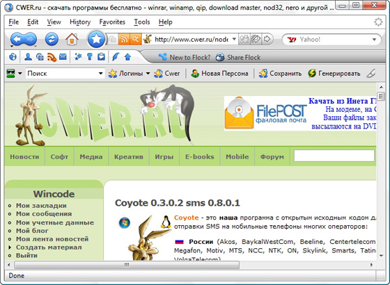 Скачать Flock 1.2.5 Final (10,7 МБ):