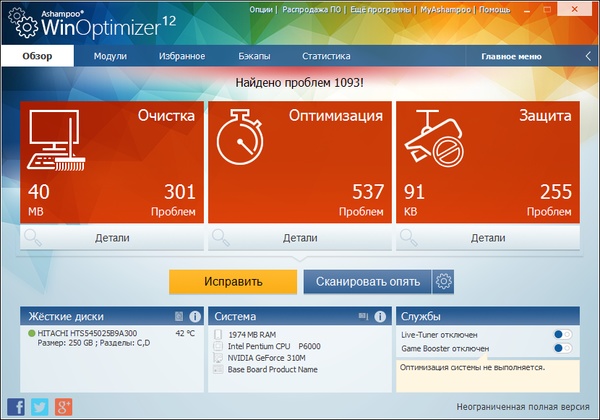 Ashampoo WinOptimizer — это свежая 12-я линейка мощного пакета приложений, которые позволяют оптимизировать операционную систему Windows за счет ее настройки и очистки. Включает в себя утилиты для очистки жесткого диска и системного реестра, модуль для обеспечения защиты личной информации путем поиска и удаления файлов и данных, оставшихся после интернет — cepфингa, утилиту для оптимизации интернет — соединения, модуль для настройки программ, автозагружаемых одновременно с запуском системы, а также модули для поиска и удаления ненужных фaйлoв DLL, для безвозвратного удаления данных и для шифрования файлов.