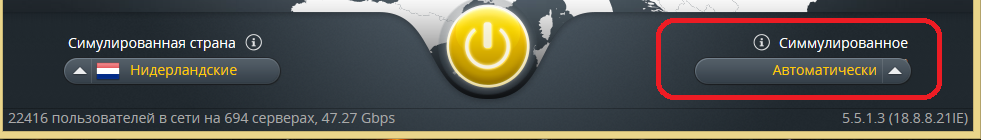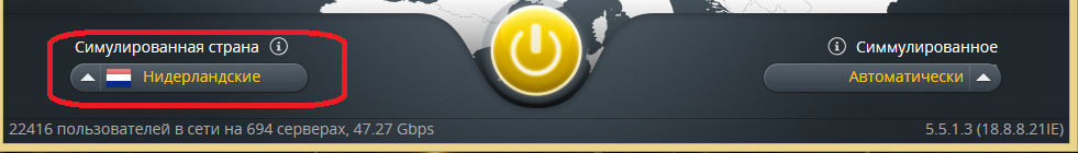 3. В поле "Симулированная страна" выбираем страну, в которую хотим виртуально уехать.