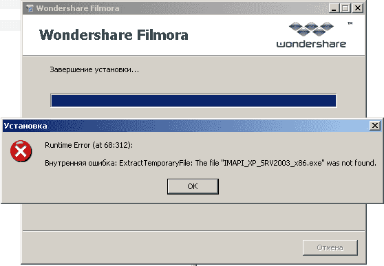 При установке появилось сообщение об ошибке:
