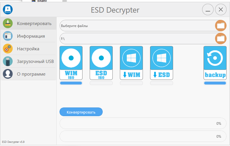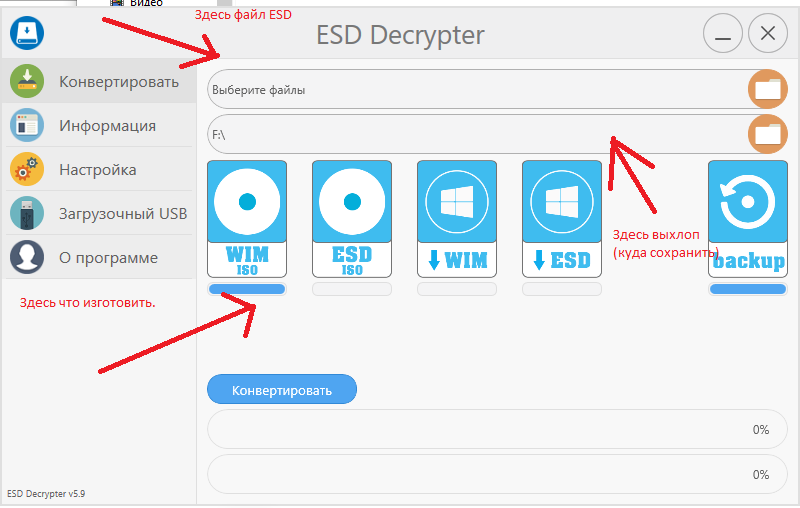 - В разделе выберете файлы указываем файл .esd полученный соответствующим образом.
