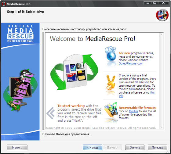 Скачать ObjectRescue MediaRescue Professional v5.1.490 (1,85 МБ):