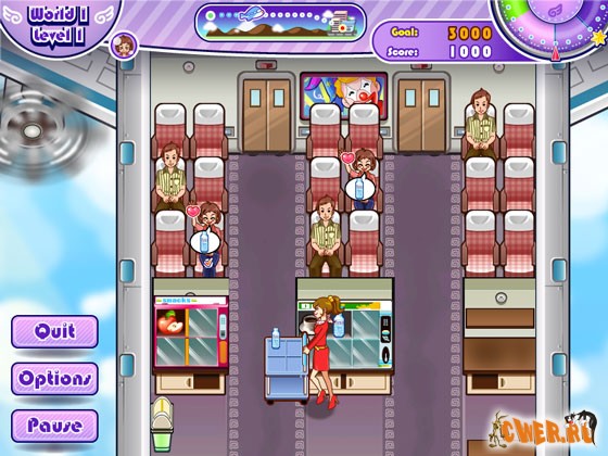 Думаете, что у Вас есть навыки, чтобы управлять самолетом, полным изворотливых и требовательных пассажиров? Подавайте пищу и напитки,распределите журналы и угодите другим случайным запросам в этом приключении!