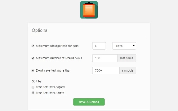 Настройки Clipboard History 2 позволяют указать срок хранения элементов или ограничить их количество, возможно даже указать максимальный размер текста, который не будет добавляться в историю. Элементы можно сортировать как по времени добавления, так и по времени последнего использования.