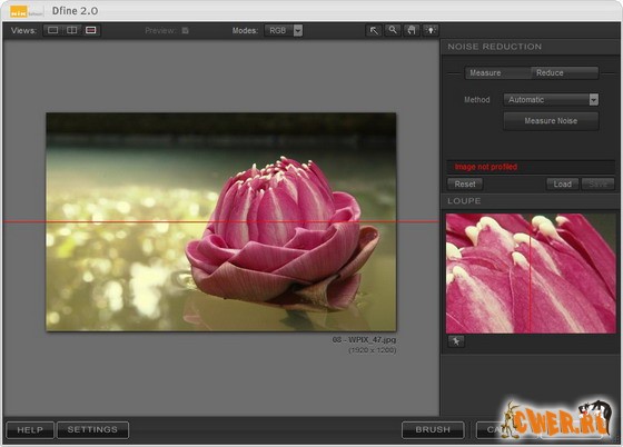 Каждый фотоаппарат имеет свои особенности обработки фотографий, поэтому и шум на изображениях, полученных при помощи разных камер, будет отличаться. Именно поэтому Dfine имеет систему подключаемых профилей для каждого типа камеры. Эти профили помогают более корректно обрабатывать изображения, полученные при помощи того или иного фотоаппарата, так как учитывают характеристики каждой модели. Впрочем, даже если не использовать профили камеры, Dfine показывает очень хорошие результаты и отлично справляется с удалением шума на изображении.