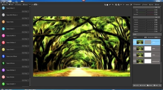 - Быстрый доступ к плагинам. Если хотите создать свои эффекты, photoFXlab предоставляет быстрый доступ ко всем плагинам Topaz.