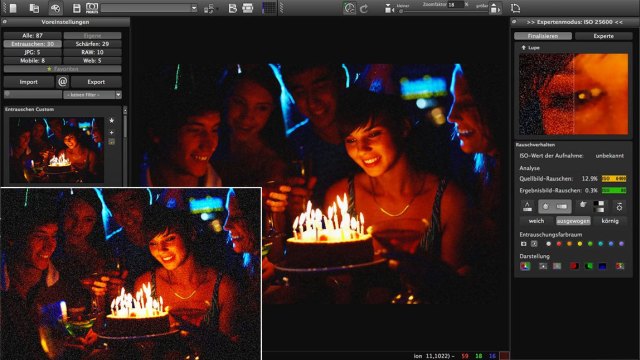 DENOISE projects - одна из лучших программ для удаления различных видов шума на изображении: яркость, цвет, полосы, блики, яркие пиксели, чередование серых и белых частиц. Позволяет создавать захватывающие сумерки, дикую природу, подводные и космические изображения. А новая технология Smart Pattern Matching прекрасно удаляет шум из ваших изображений сохраняя цвета, резкость и мельчайшие детали.