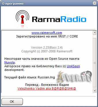 RarmaRadio - программа для прослушивания и записи интернет-радиостанций. Обладает большим набором возможностей, обеспечивая комфортное прослушивание радиостанций и удобную запись транслируемых данных. Программа содержит множество станций рассортированных на группы в зависимости от жанра музыки, битрейта, сети и региона, имеет функцию поиска станций, автоматически скачивает из Интернета информацию о проигрываемых песнях, включая альбомную графику, и поддерживает подключение плагинов медиаплеера Winamp. С помощью RarmaRadio можно слушая одну станцию, одновременно записывать несколько других интернет-радиостанций, осуществлять запись интернет-вещания по расписанию, а также автоматически начинать запись, в случае если заиграла определенная композиция. При сохранении полученных аудио файлов RarmaRadio добавляет в них теги.
