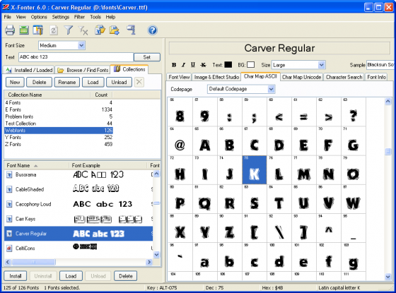 Finding the right font is often a difficult task, but X-Fonter makes this job easy for you. You can create your own color schemes and use your own preview text. There's a character map included for both ASCII and Unicode, so you can easily find out how a specific character looks, or whether that specific character is included in a font.