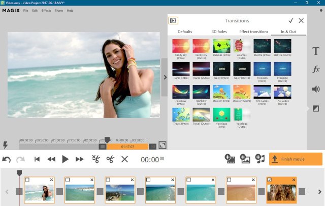 В Video easy возможен импорт и экспорт в новейшем формате 4K-Ultra HD. Наслаждайтесь сверхчеткой картинкой в разрешении, в 4 раза превышающем стандартное. - Переходы