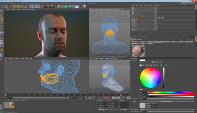 - CINEMA 4D предлагает все стандартные и дополнительные опции для создания великолепной поверхности для ваших моделей.