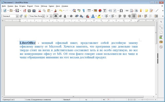 LibreOffice - мощный офисный пакет, сходный по функционалу с Microsoft Office и включает текстовый редактор, редакторы электронных таблиц, презентаций, векторной графики, математических формул. Совместим с форматами MS Office, поддерживает большинство операционных систем, включая Windows, Linux, Mac OS X. Совместим с 32/64-битными системами и переведён более чем на 30 языков мира.