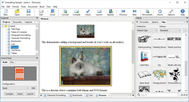 Anthemion Jutoh - программа для создания электронных книг буквально за несколько секунд из уже имеющихся файлов, используя New Project Wizard, а также создание e-book книг, используя встроенный стилизованный текстовый редактор. Обложки книг можно выбрать из шаблонов Jutoh's или создать свои при помощи встроенного кавер-редактора. Созданные проекты электронных книг вы можете продать на различных сайтах.