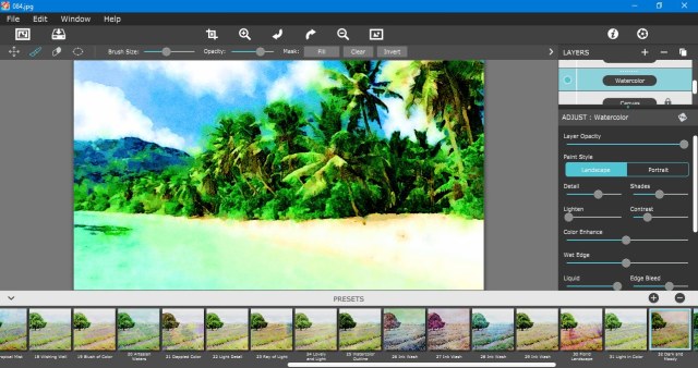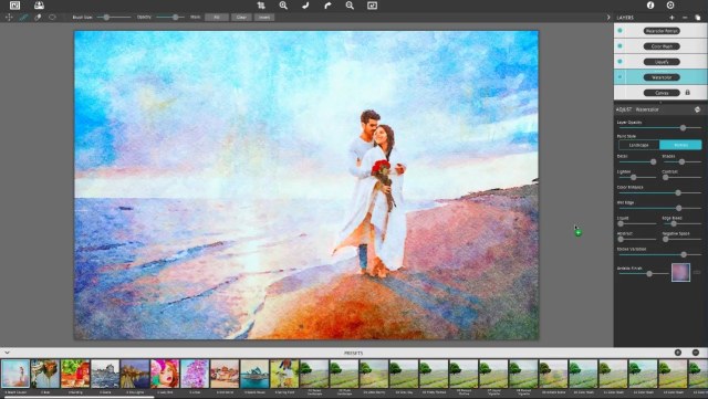 Watercolor Studio - графический редактор для создания естественных, полупрозрачных акварельных эффектов. Программа моментально создает из вашего изображения акварельную картину, а затем позволяет настроить и применить эффекты при помощи набора слайдеров, кистей, слоев, цветовых шаблонов и художественной отделки. И в результате вы получите качественные акварельные краски, наполненные прозрачной и естественной красотой.