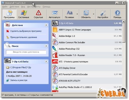 - удаление программ, деинсталляция которых стандартными средствами невозможна.