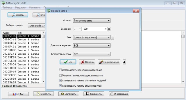 - Поиск с учетом кратности адреса. Что позволяет, например, искать значения только по чётным или кратным адресам, что в разы быстрее, чем по всем. Для игр Windows 32 бита адрес чётен примерно в 90% случаях, а кратен четырем в 75% случаях.